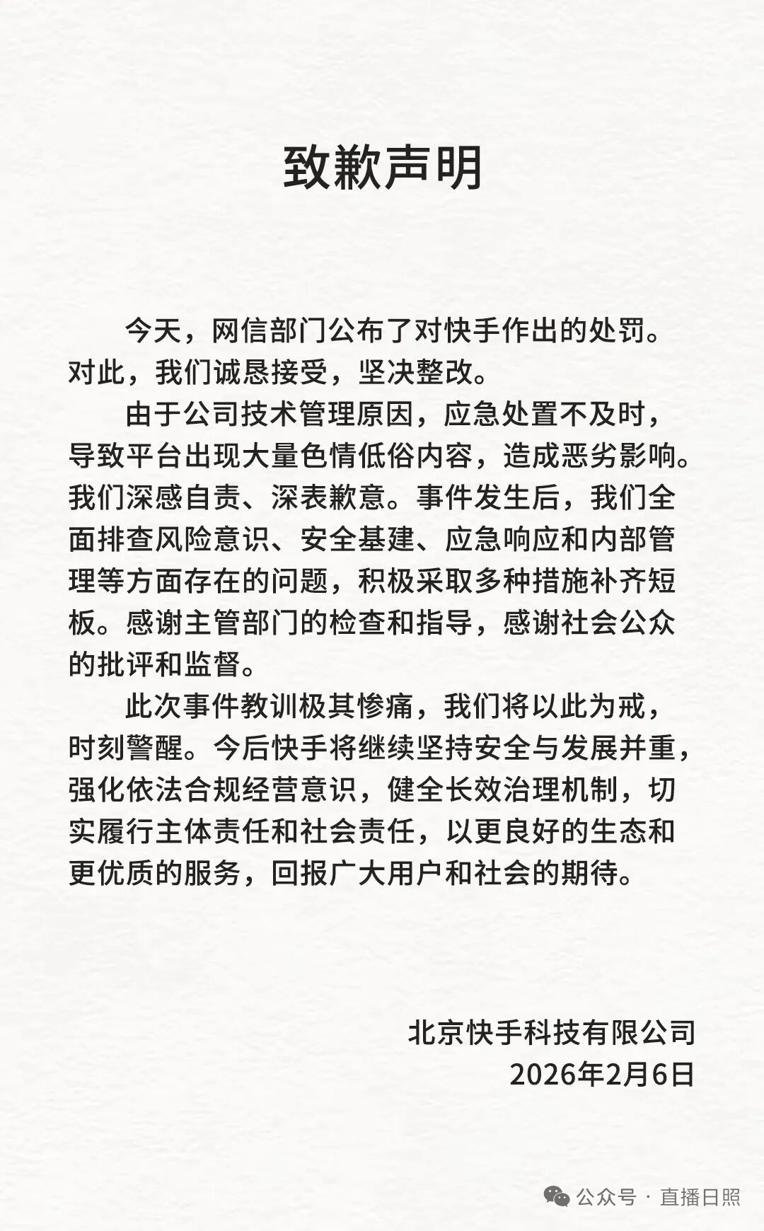 快手致歉:由于公司技术管理原因,应急处置不及时,导致平台出现大量色情低俗内容,造成恶劣影响,诚恳接受,坚决整改 20 2月06日 冉冉 取消关注 关注 私信 快手致歉:由于公司技术管理原因,应急处置不及时,导致平台出现大量色情低俗内容,造成恶劣影响,诚恳接受,坚决整改 原文连接